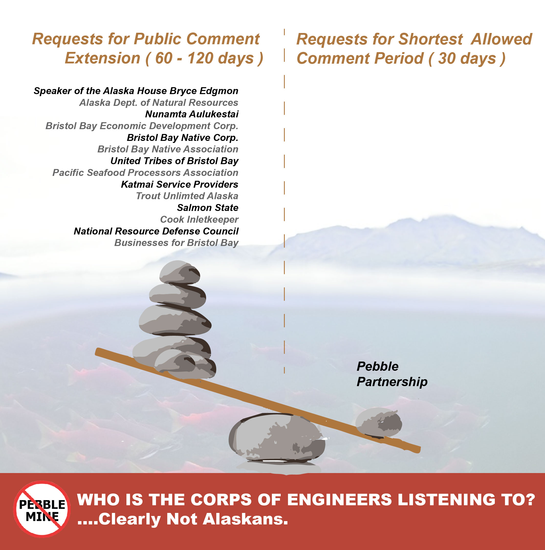 Today, we thank the individuals and state leaders who requested the Army Corps of Engineers do the sensible thing and give the public more time to weigh in on the massive, threatening Pebble Mine proposal.